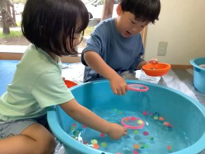 夏祭り! 2023/08/20 夏祭りをしました! ”スーパーボール” 破れないように慎重に!!! ”ヨーヨー釣り” 輪っかをねらってそーーーと! ”的当て” 狙って狙って~大当たり! みんな楽しく夏祭りをしました! ≪ お買い物🛍 コラージュ! ≫