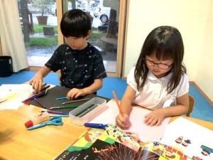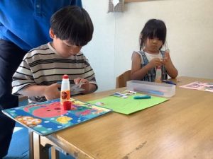 コラージュ! 2023/08/31 夏祭りの思い出をコラージュにしました! ハサミを使ってイラストをチョキチョキ! 絵本を見ながら花火やスイカなどをカキカキ! 完成! 素敵な夏祭りコラージュが出来ました! ≪ 夏祭り! 泥遊び●~* ≫