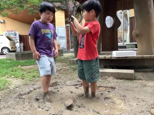 れっつの庭でどろ遊びをしました(^^)