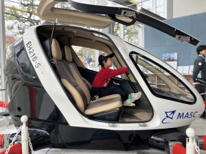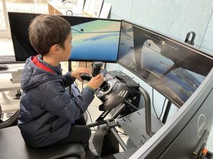 空飛ぶクルマ展示場では、VR 体験やシュミレターで操縦体験ができました。車内にも乗ることができ「飛んでみたい^^」「秘密基地みたい!」と楽しそう♩