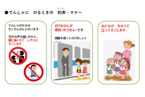 電車に乗る為に、切符は自分で購入しています。車内では、事前に約束していた“大人の近くにいること”“静かな声で話すこと”を守って過ごしています。