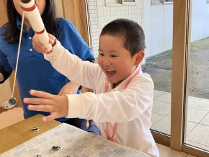 年中、年長のお友達はお友達とペアになってやりとりすることや協力することをねらいとしています。