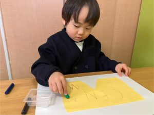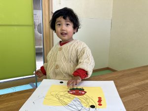 年少のお友だちは、お絵かきやシール貼り、