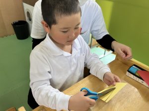 折り紙で輪っかの飾りを作ったよ!!