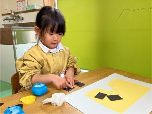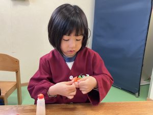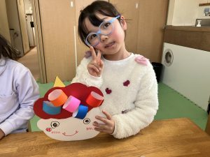 年中・年長のお友だちは、鬼のお顔作り!