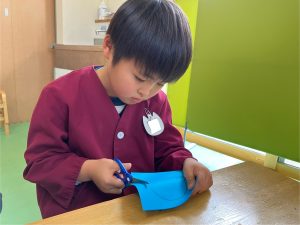 はさみやのりを使って 鬼のパンツを作りました^ ^