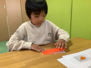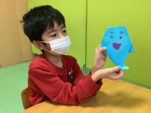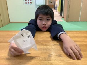 れっつ内に飾る為、小学生のお子さんが折り紙でおばけ