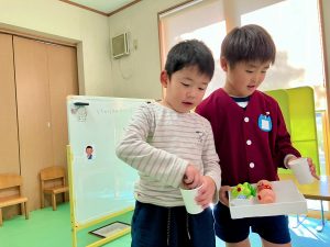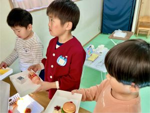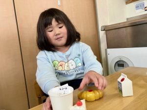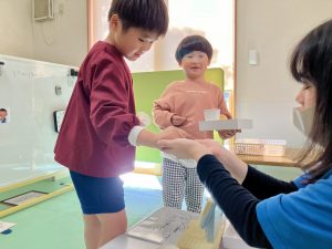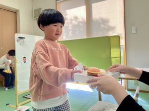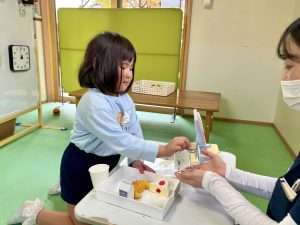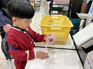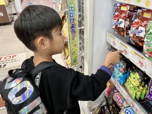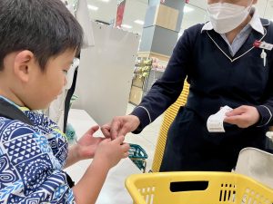 お金を払い終わった後は少し緊張もなくなりニコニコになるお友達でしたよ!