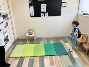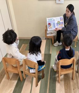 絵本で確認をしたり、実際の道路に見立てて歩く練習をしたりしました